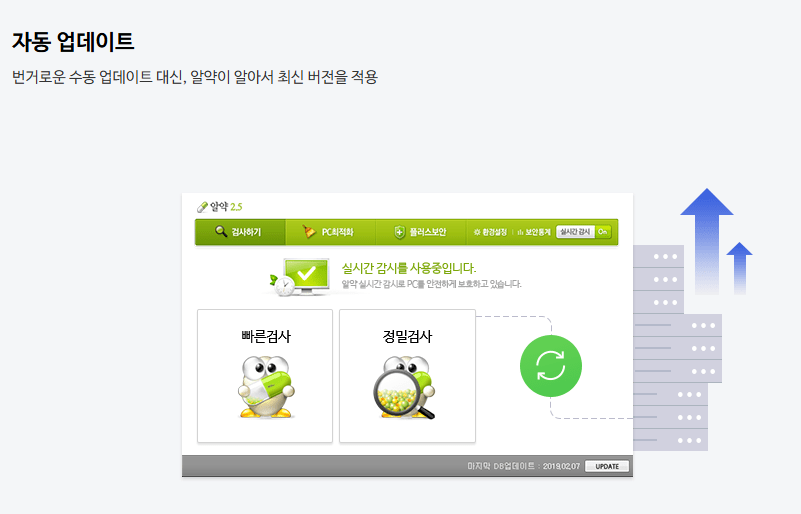 알약 백신의 자동 업데이트를 설정하면, 새로운 바이러스 데이터베이스가 나올 때마다 자동으로 업데이트됩니다.