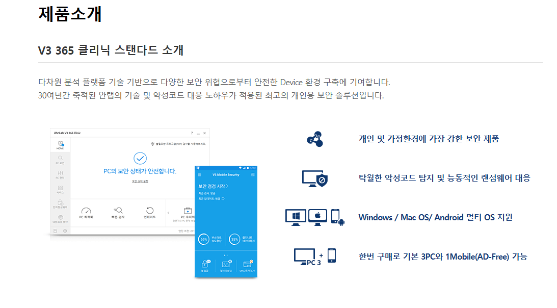 - 추가 보안 기능(랜섬웨어 보호, 방화벽, 피싱 차단 등) 제공